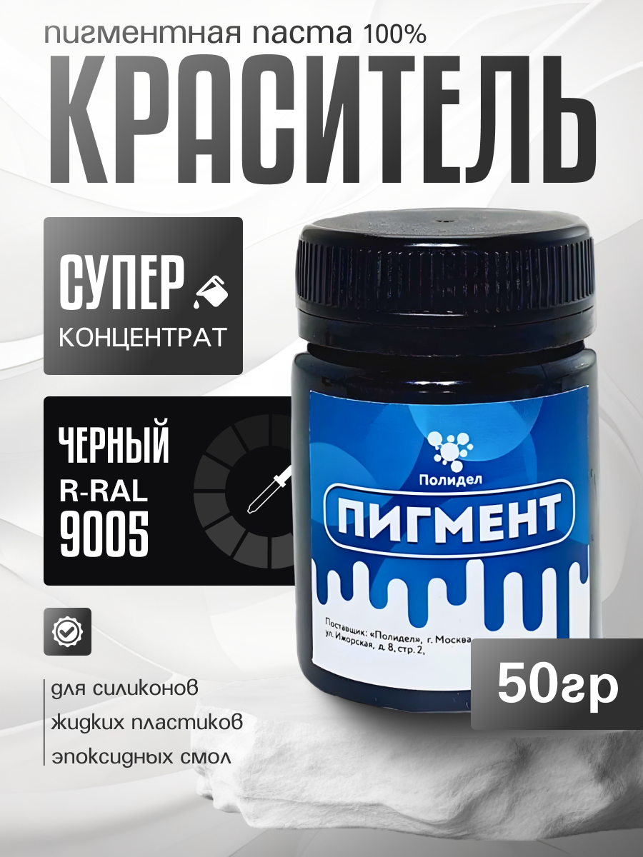 Главная Красители и пигменты Пигменты для композитных материалов Пигментная паста (светонепропускаемые) для смолы, пластика и силикона Полидел О, Черный 50гр.