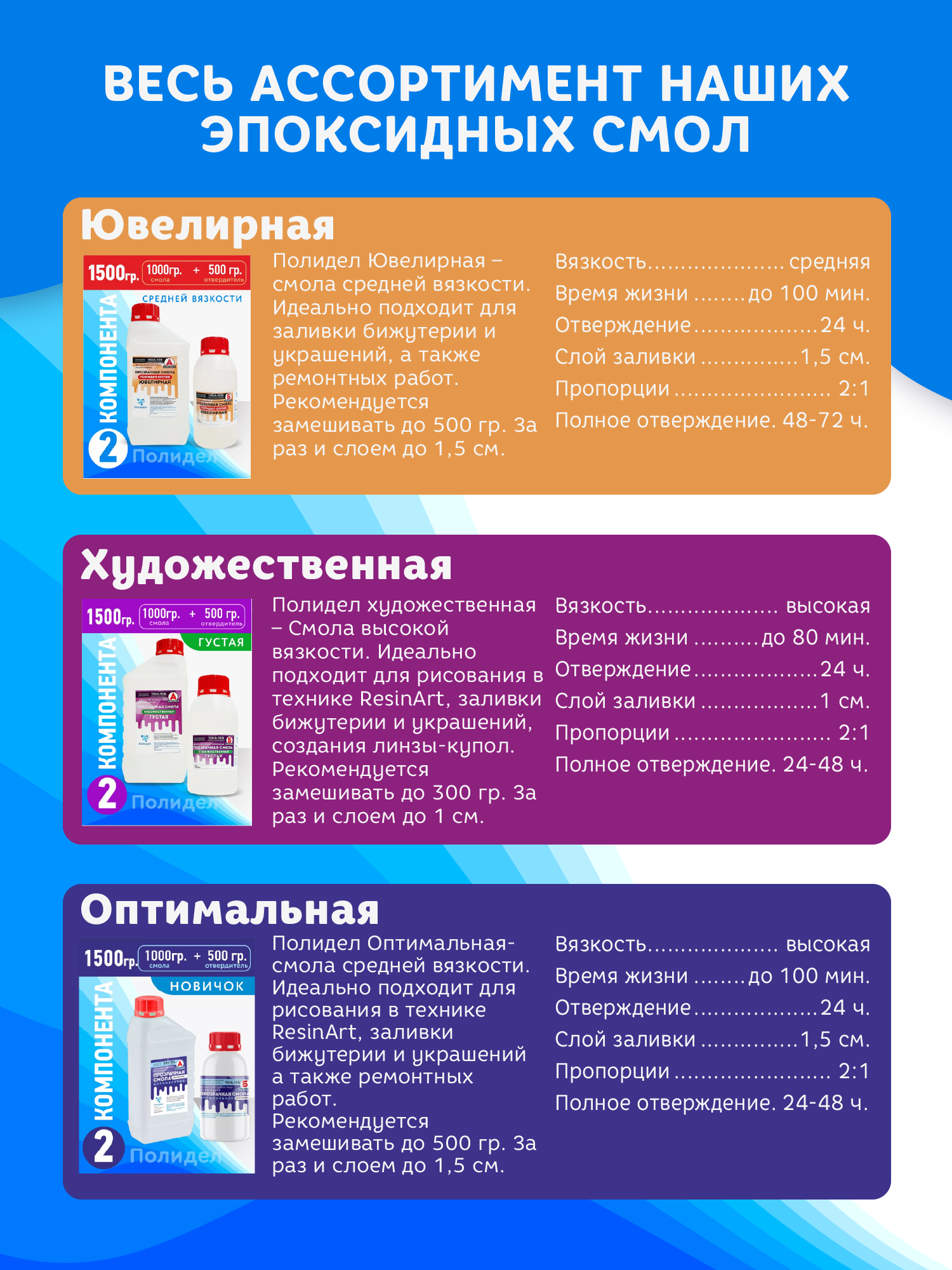 Эпоксидная смола Художественная Полидел для рисования картин и бижутерии , густая, 1500г